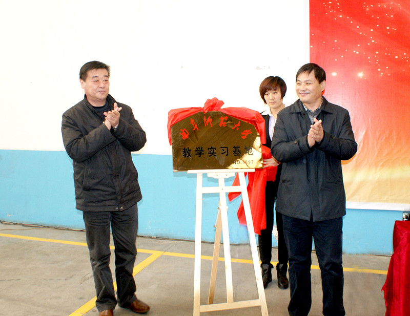 工学院院长武玉强和阳光概念包装有限公司总经理张洪明签订了校企合作协议,郭辰夫与王军绪共同为“万象城手机网页版登录入口教学实习基地”揭牌。