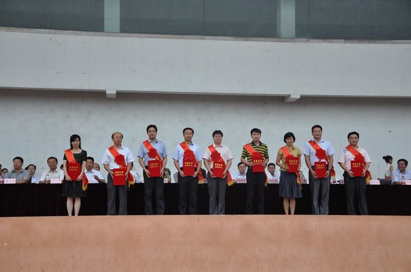 我校隆重举行2014—2015学年开学典礼、新生军训动员暨教师节庆祝大会