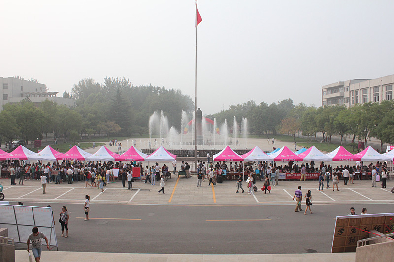 校园里一片欢腾,彩旗飘扬,喷泉涌动,醒目的指示牌、温馨的提示语、多样的宣传板、热情的迎新师生,共同谱写出欢乐乐章。走在新修葺的路上,随时随地都能看到欢迎新同学的条幅,校园广播里滚动播放着新生入学感受和歌曲,整个曲园洋溢着迎新的喜庆氛围。