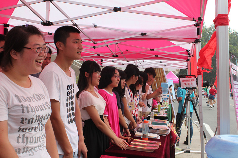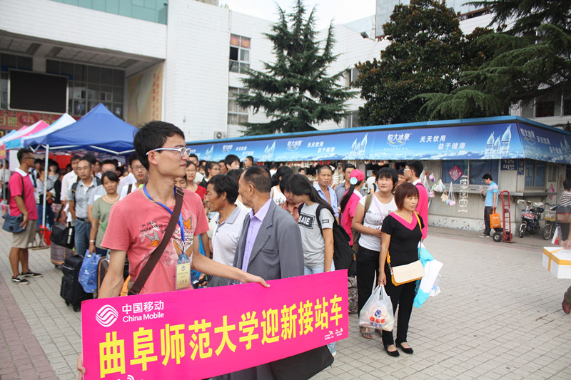在迎新现场,各单位、各部门各司其职、密切协作,迎新工作有条不紊地进行着。各学院迎新接待点24小时值班,志愿者协助新生报到、注册、缴费、领取宿舍钥匙、运送行李;学校职能部门印制了迎新指南、新生入学手册、校园手绘地图、新生报到流程图和指引标志,为新生报到提供引导;在校内每个路口,安排专门工作人员指挥交通、提供咨询服务;各学生社团在进行形象展示的同时,都设立了志愿服务、免费饮水点。为了确保新生安全、顺利地来校报到,学校在兖州火车站、高铁曲阜东站、曲阜火车站和汽车站,日照火车站、汽车总站和东站,分别设立新生接待站,安排车辆接送新生入校,为新生和家长提供贴心便捷的服务;学校在体育馆大厅设有免费床位,日照校区设立温馨帐篷,为偏远地区家长提供免费住宿;党员服务岗、家长休息区、家长座谈会、安全提示卡等,令家长和新生倍感温馨。各学院为迎接2014级新生入学更是为新生和家长提供贴心、便捷的服务,历史文化学院开通了新生家长群和官方认证微信,政治与公共管理学院创新实行“首接责任制”,外国语学院提前建立了新生QQ群,物理工程学院在接待新生时采取学生会和班级合作原则,并给新生发放信息小纸条等。