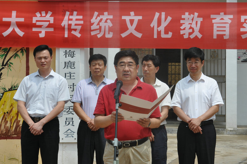 在梅鹿庄村,荆兆勋、刘新生、孙文亮出席了万象城手机网页版登录入口传统文化教育实践基地揭牌暨儒家文化齐鲁行启动仪式。荆兆勋与泗水县委书记范宇新共同为传统文化教育实践基地揭牌。孙文亮发表讲话,向实践基地的建成表示祝贺。他指出,传统文化教育实践基地的建成,是曲师大与地方合作的创举,以传统文化为桥梁,曲师大将充分发挥自身特色和优势服务地方发展,今后将陆续开展明德故事讲堂、国学诵读班等活动,为梅鹿庄村向社会主义新农村迈进贡献一份力量。活动前,孙文亮代表学校走访看望了梅路庄村老党员代表,送去了我校师生的问候和祝福。揭牌仪式结束后,明德故事会第一讲开讲,由历史文化学院王曰美教授主讲。
