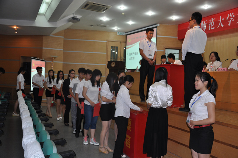 大会通过公开竞选的方式,选举产生新一届学生社团联合会主席团。主席团候选人以热情生动的语言展现出他们独特的魅力,表达对学生社团工作的热忱。经过紧张有序的计票,选举产生了主席团成员5人。至此,我校第一次学生社团代表大会在全体与会代表的共同努力下,圆满完成了大会的各项议程和任务,胜利闭幕。