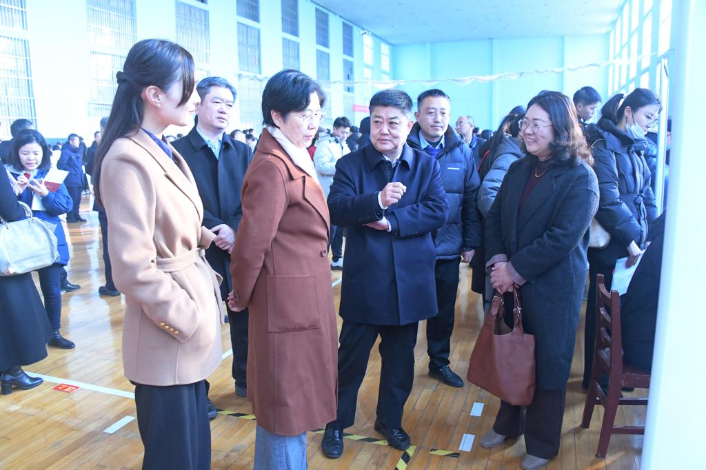 王洪正在致辞中表示,济宁市创新招聘方式,开展“校园招聘”“名校人才直通车”等活动,进行“组团式”引才。三年来,探索采取“仅面试、不笔试”或“先面试、后笔试”的引才模式,科学运用面谈、面试、专业技能测试、答辩等形式,吸引了一批优秀人才到教学一线,全市教育队伍整体素质和教育教学水平全面提升,全社会尊师重教蔚然成风。本次校园招聘会再次为留才引凤建设高素质教师队伍注入新鲜血液,为济宁市基础教育发展汇聚了巨大能量。