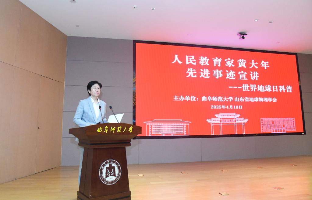 党委宣传部讯  4月18日,曲阜师大举行弘扬践行教育家精神报告会第一讲,与山东省地球物理学会联合组织开展“人民教育家”黄大年先进事迹宣讲活动。中国科学院院士、地球物理学家滕吉文,中国地球物理学会副秘书长、高级工程师胡敏,教育部教育家精神宣讲团成员、吉林大学地球探测科学与技术学院教授于平,曲阜师大党委副书记、校长张洪海,党委副书记李志红等出席活动。