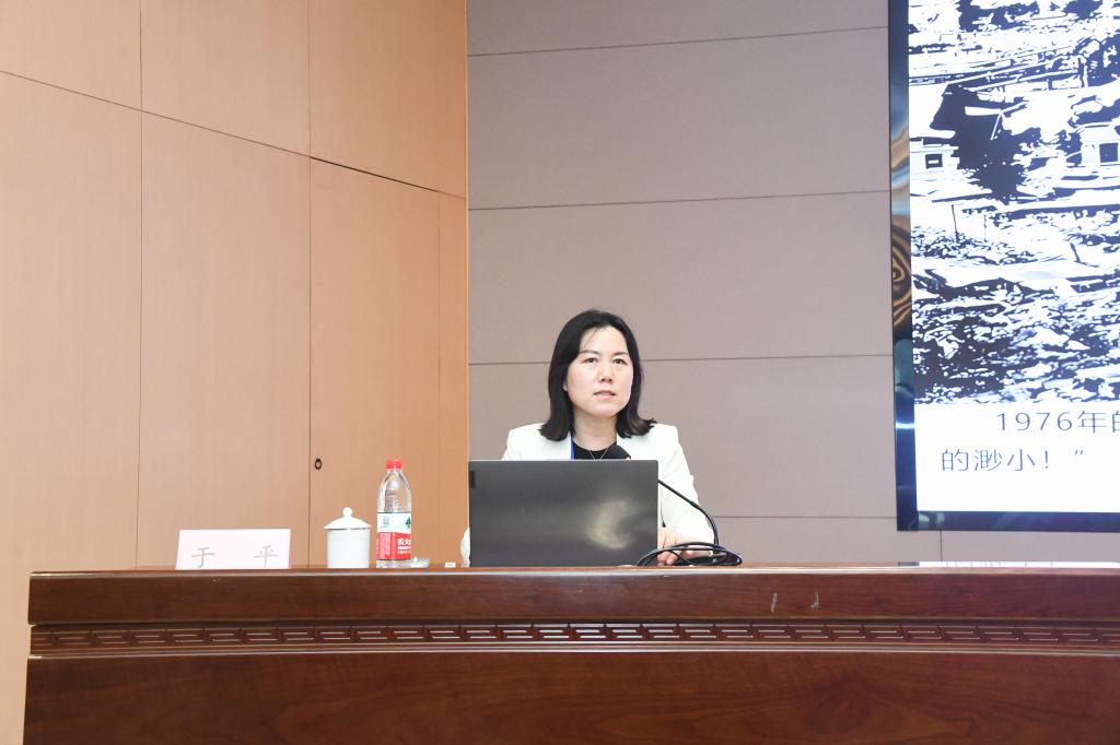 在专题报告中,于平以《以大我之心,担科教强国使命》为题,结合黄大年“广西成长、扎根东北、求学海外、报效祖国”的教学科研工作经历,娓娓道出了黄大年教授卓越而伟大的一生。她用质朴的语言描述出了”人民教育家“黄大年信仰崇高、理想坚定,具有前瞻战略格局和爱国爱岗爱学生的“大国良师”形象,其与黄大年教授一起奋斗过程中那些鲜活的事件和真实的细节更是感动着现场的每一位教师。