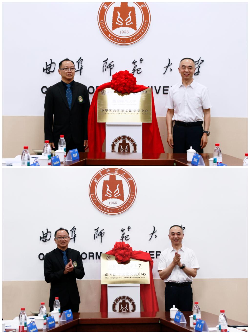 李兆祥和Sinat Koslanant共同为在万象城手机网页版登录入口设立的泰国语言文化交流中心,以及在兰帕潘尼皇家大学设立的中华传统文化中心揭牌。