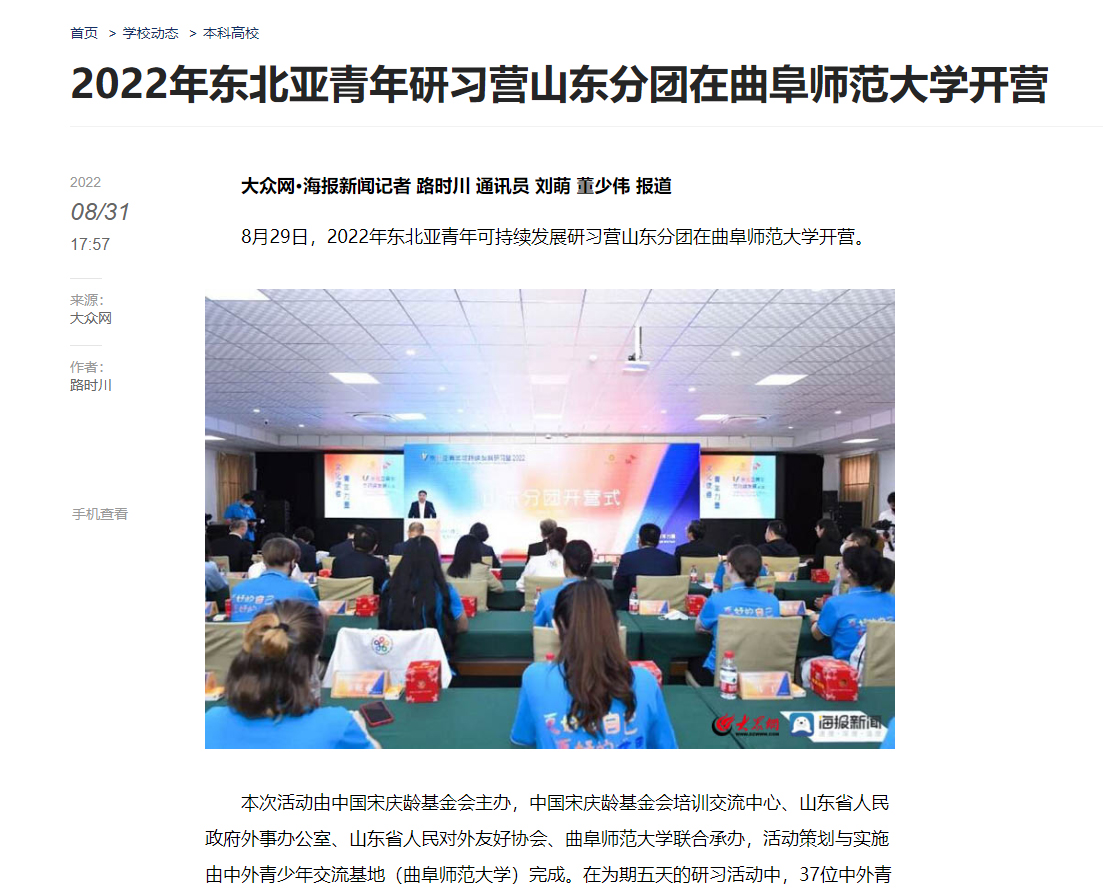 【大众日报】2022年东北亚青年研习营山东分团在曲师大开营
