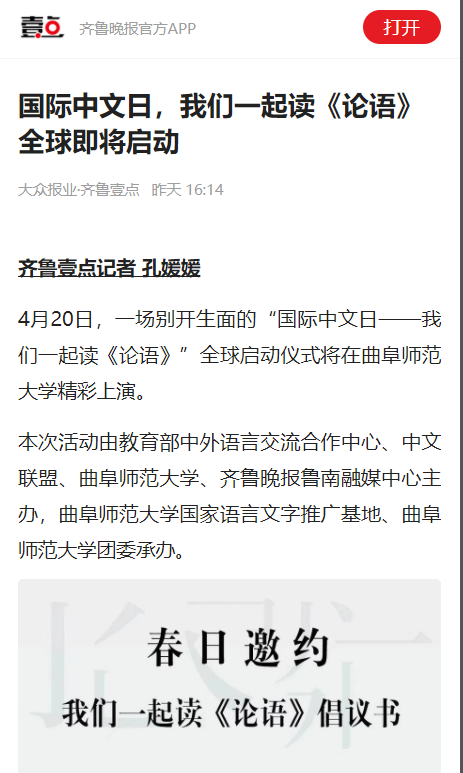 【齐鲁壹点】国际中文日,我们一起读《论语》全球即将启动