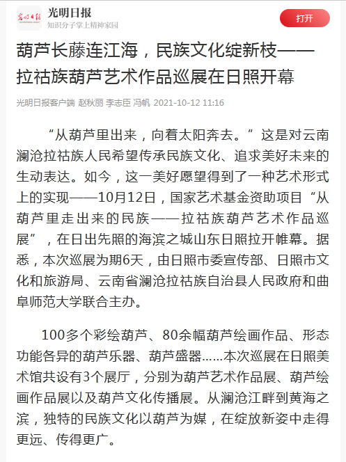 【光明日报】拉祜族葫芦艺术作品巡展在日照开幕