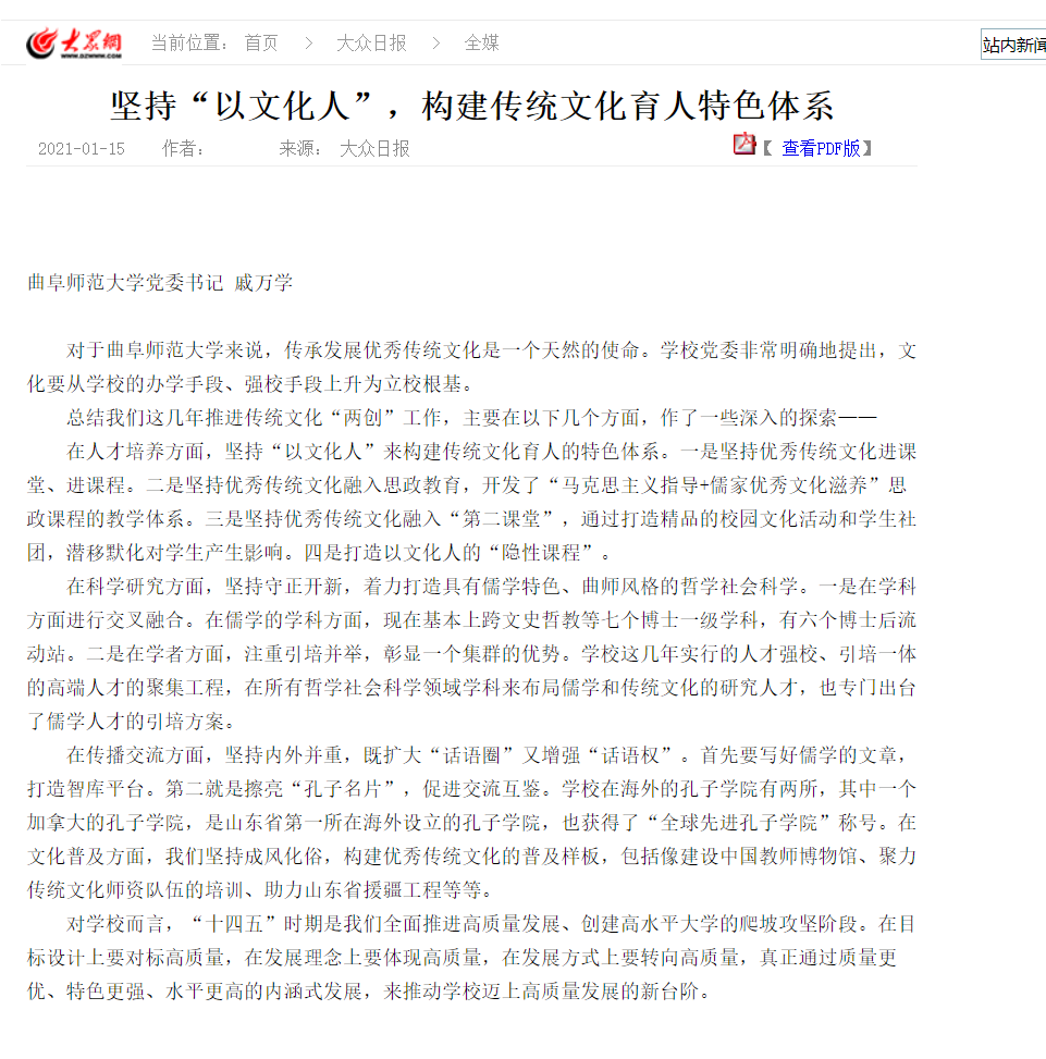 《大众日报》戚万学:坚持“以文化人”,构建传统文化育人特色体系