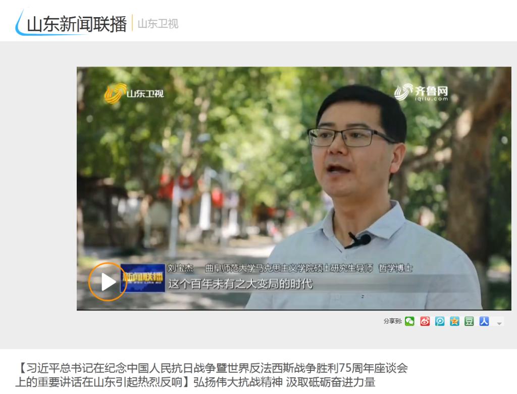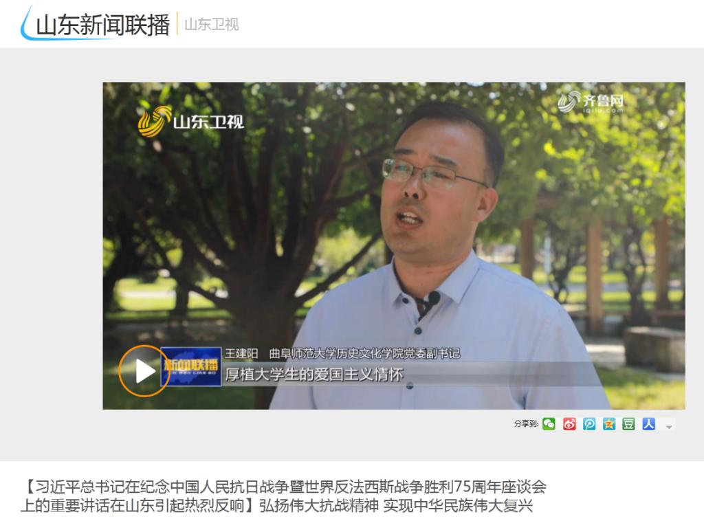 山东新闻联播:曲师师生热议习近平总书记在纪念中国人民抗日战争暨世界反法西斯战争胜利75周年座谈会上的重要讲话