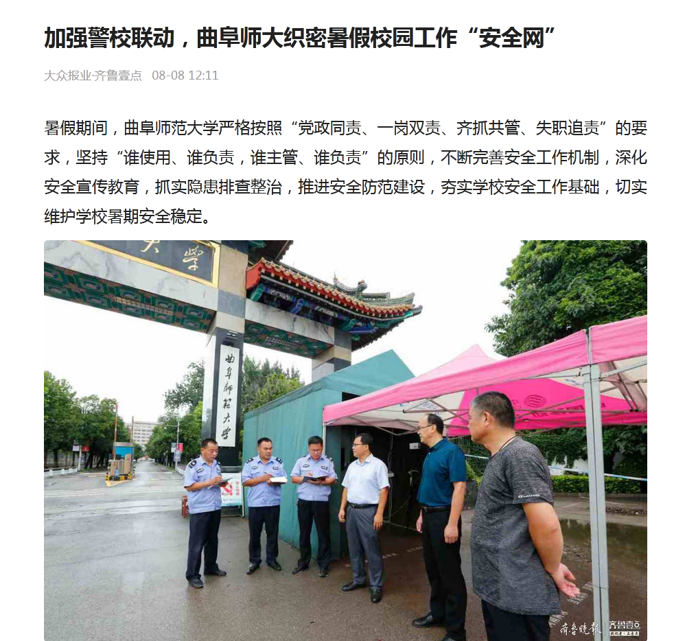 齐鲁壹点:加强警校联动,曲阜师大织密暑假校园工作“安全网”