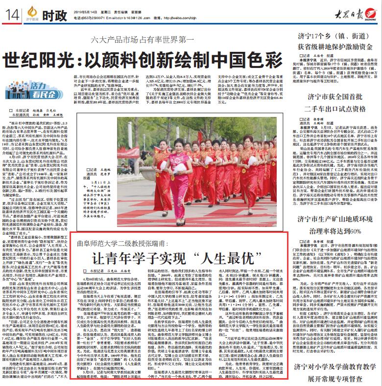大众日报:曲师大张瑞甫教授:让青年学子实现“人生最优”