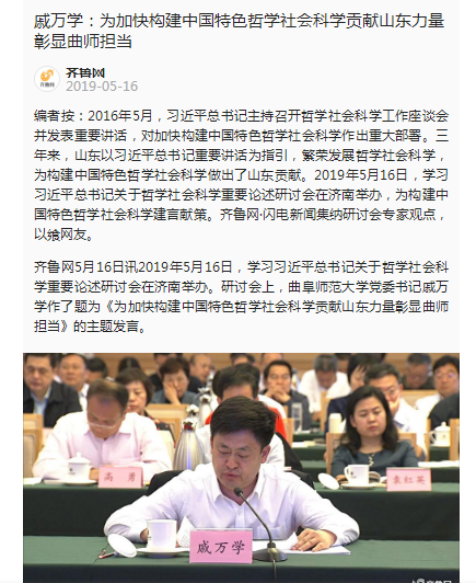 戚万学:为加快构建中国特色哲学社会科学贡献山东力量 彰显曲师担当