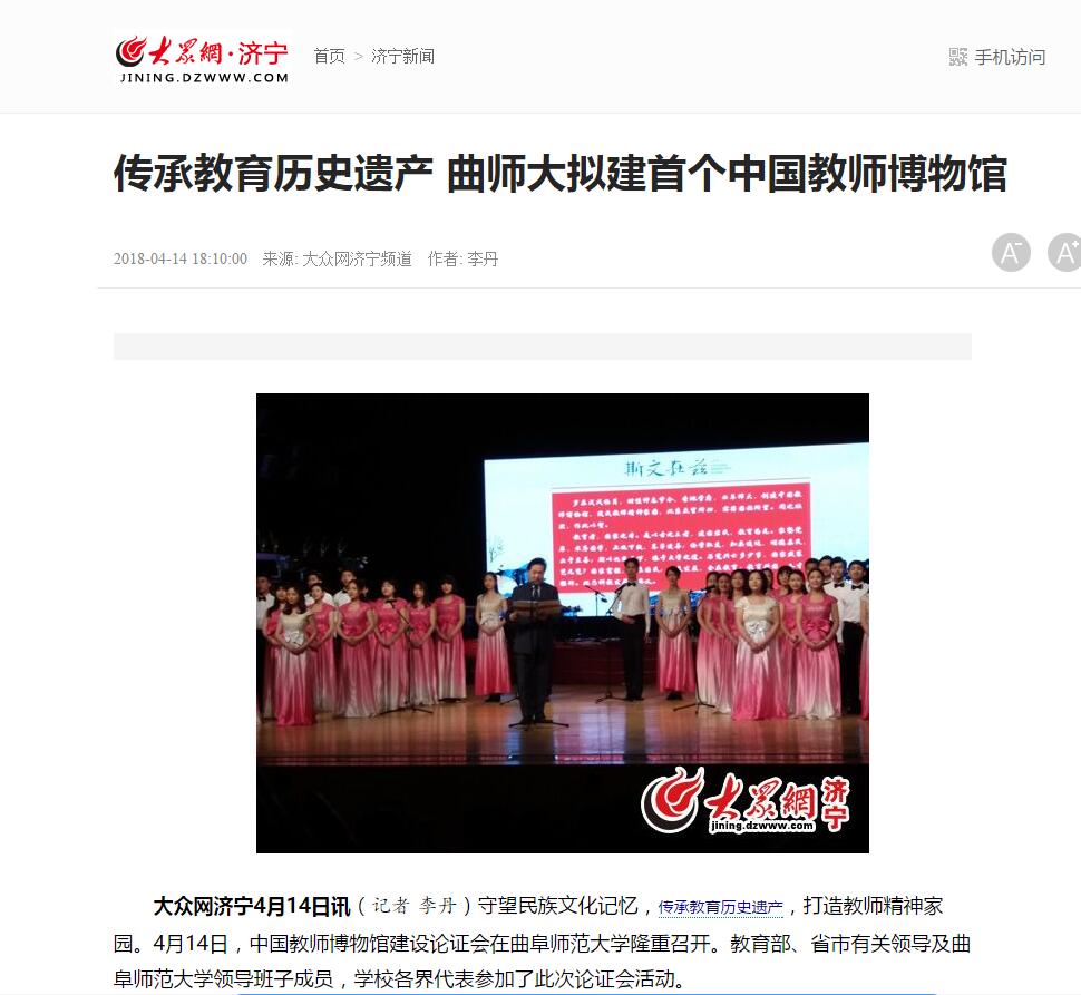 大众网:传承教育历史遗产 曲师大拟建首个中国教师博物馆