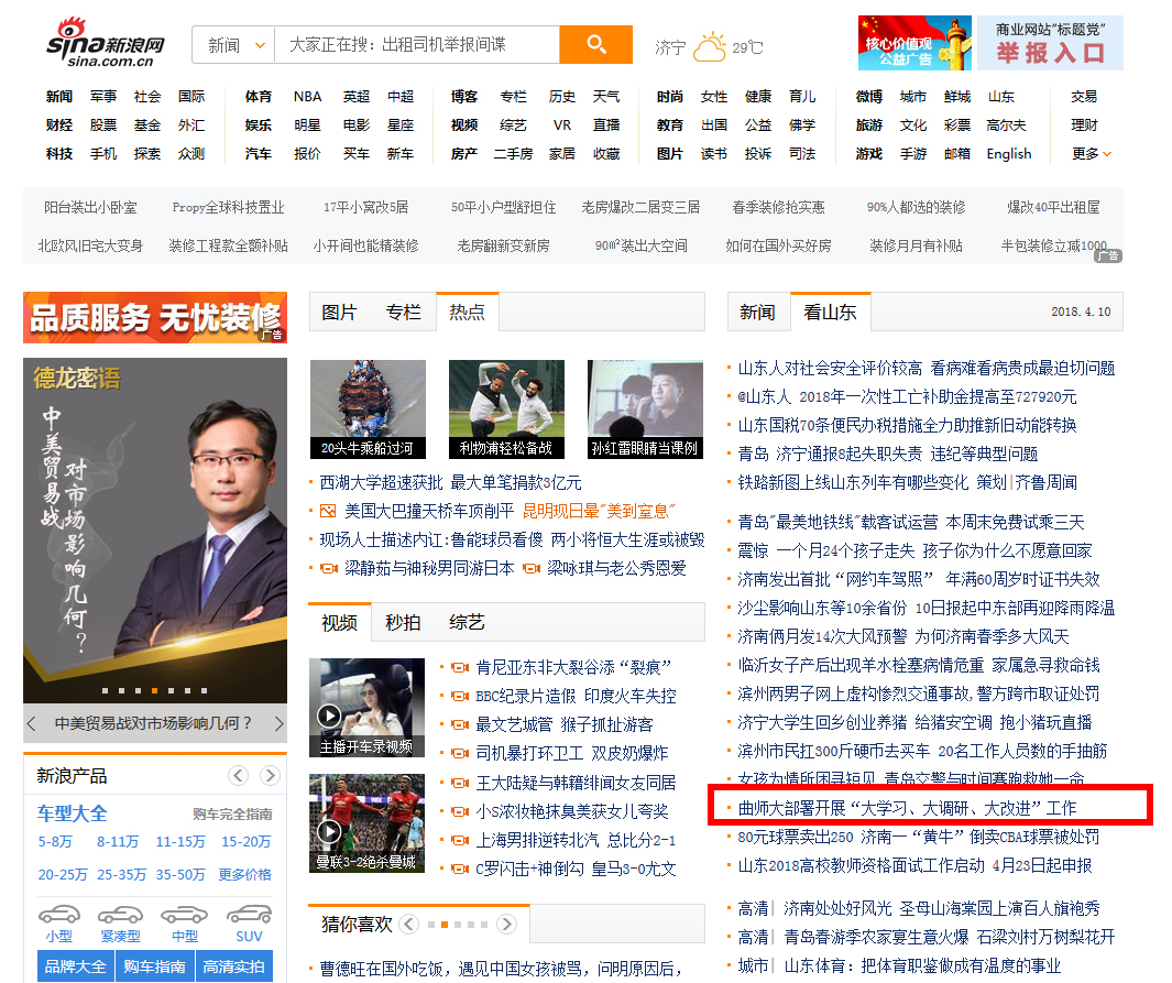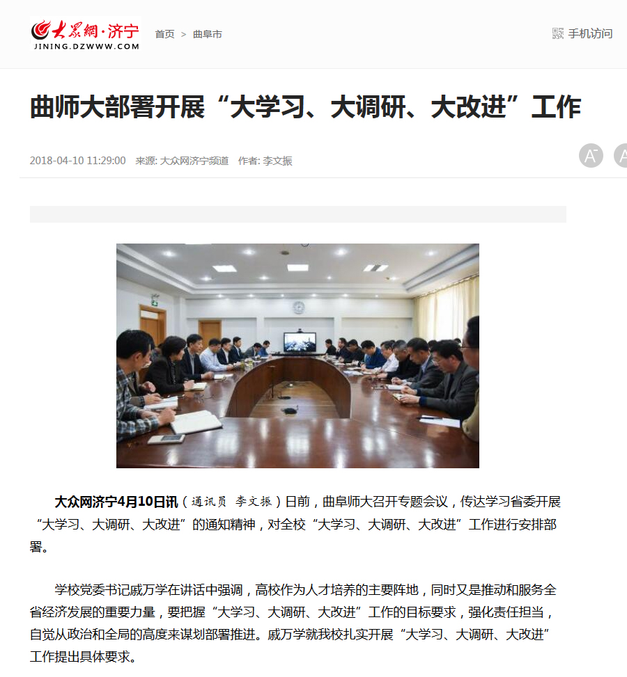 新浪网:曲师大部署开展“大学习、大调研、大改进”工作