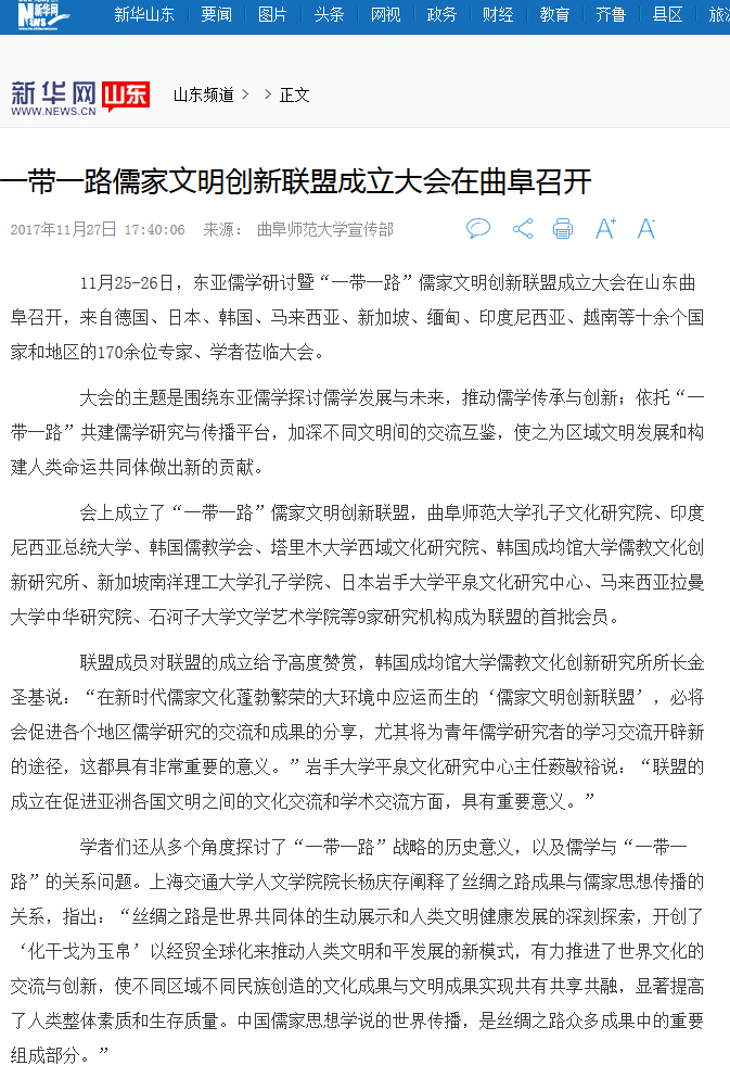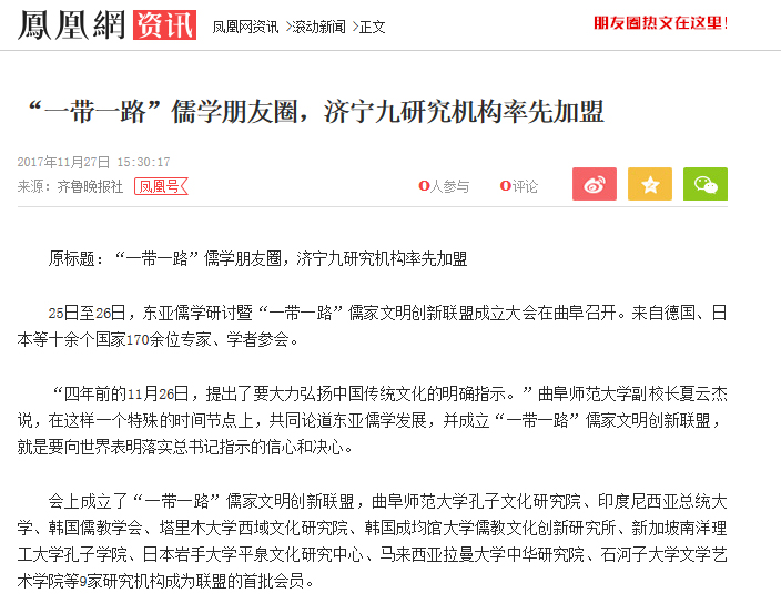 人民日报等媒体关注我校发起成立儒家文明创新联盟