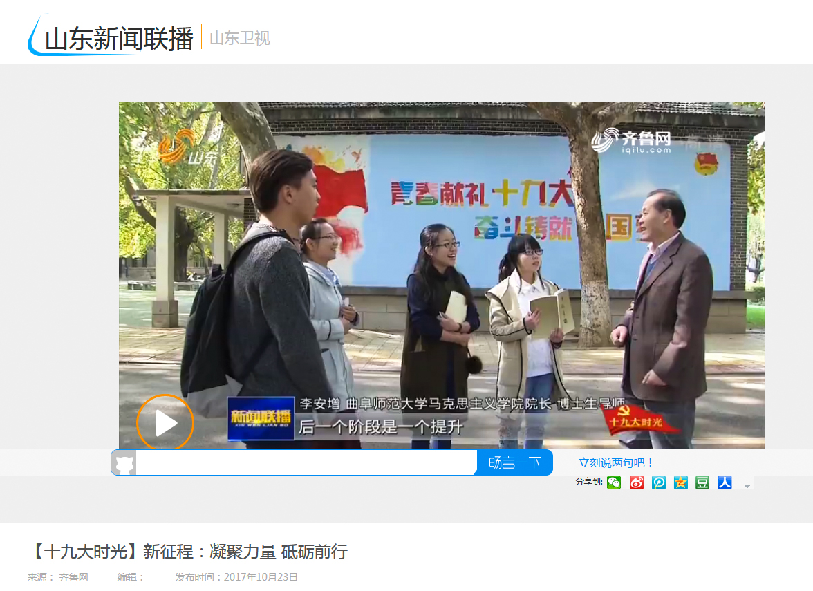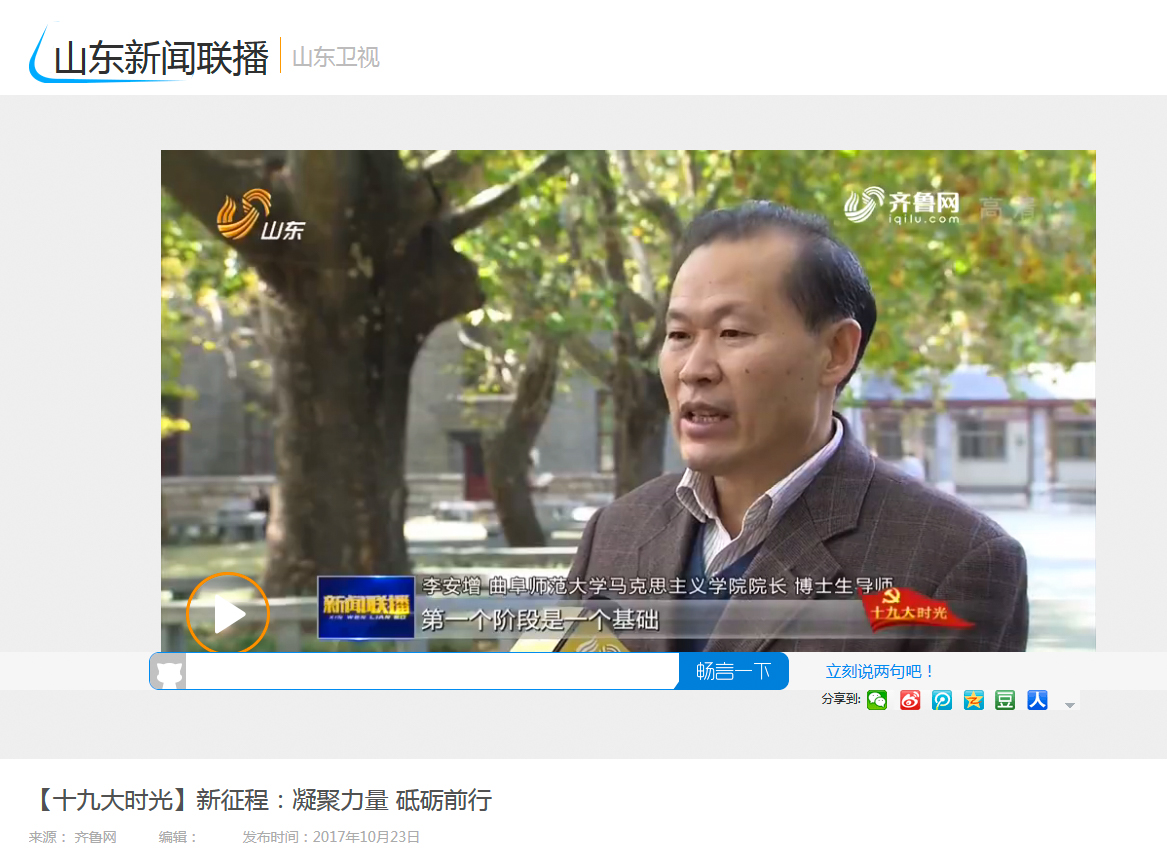 山东新闻联播:曲师大李安增教授谈十九大报告学习体会