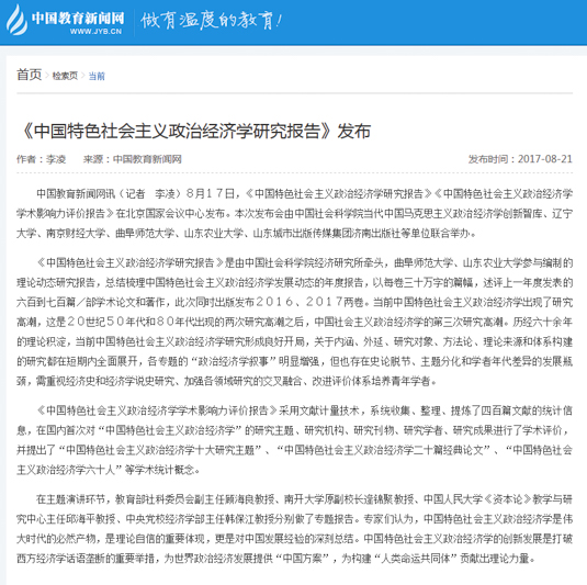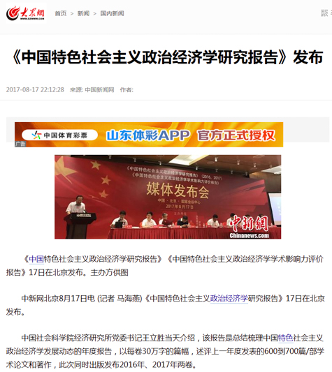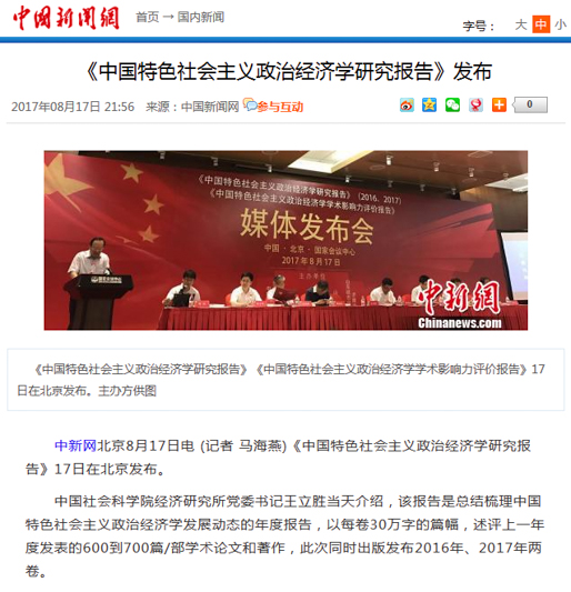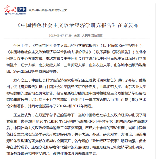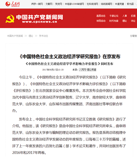 媒体广泛报道我校在京联合发布《中国特色社会主义政治经济学研究报告》