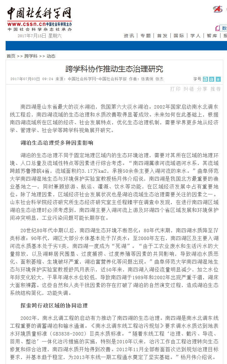 中国社会科学网:跨学科协作推动生态治理研究