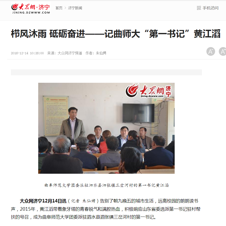大众网:栉风沐雨 砥砺奋进——记曲师大“第一书记”黄江滔