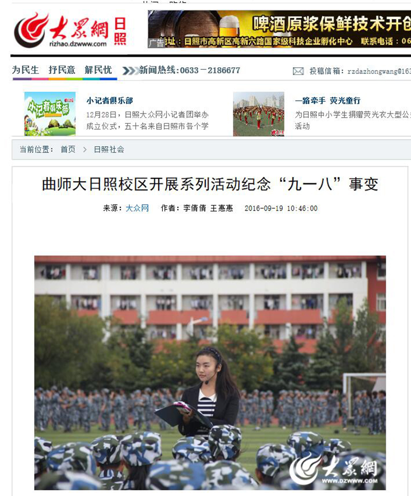 大众网:曲师大开展系列活动纪念“九一八”事变
