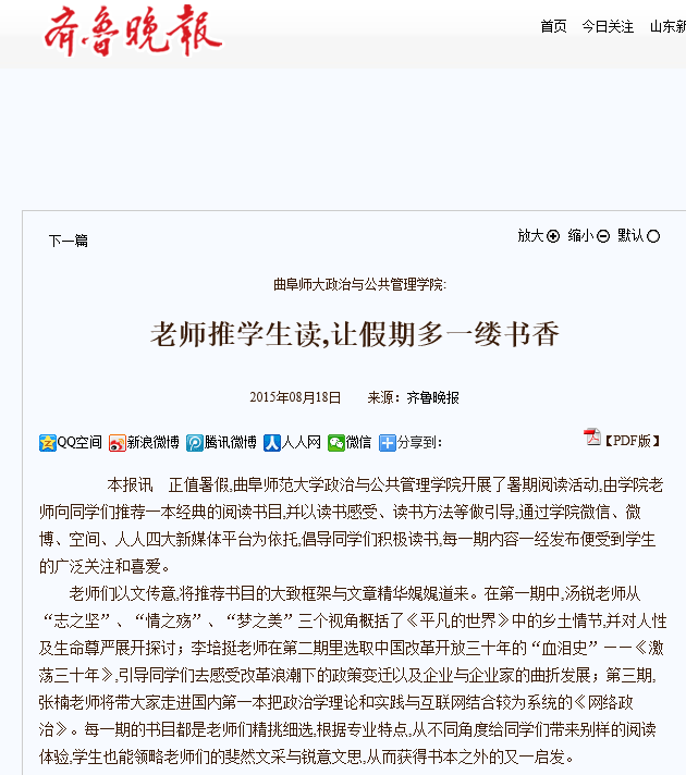 齐鲁晚报:老师推学生读,让假期多一缕书香