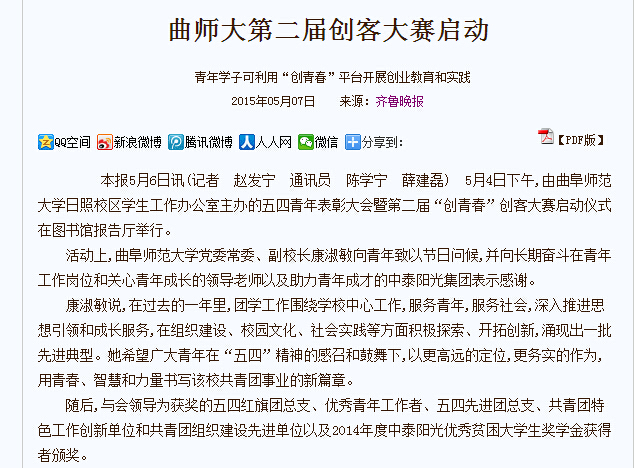 齐鲁晚报:曲师大第二届创客大赛启动