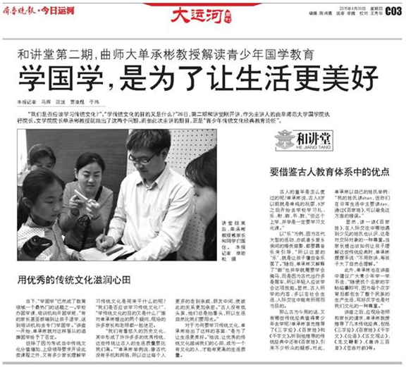 齐鲁晚报“和讲堂”:曲师大单承彬教授解读青少年国学教育