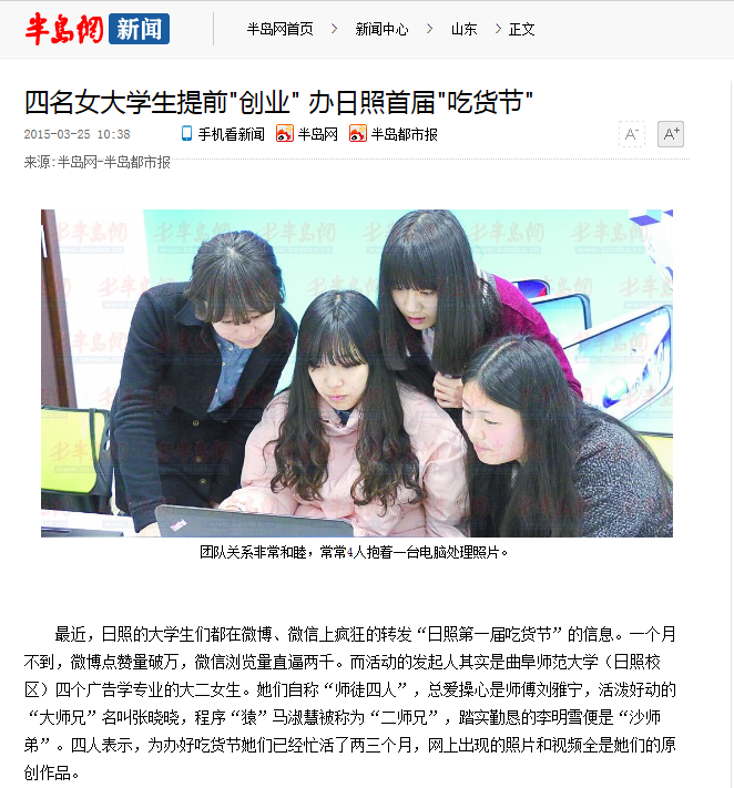 半岛都市报:传媒学院四名女大学生提前"创业" 办日照首届"吃货节"