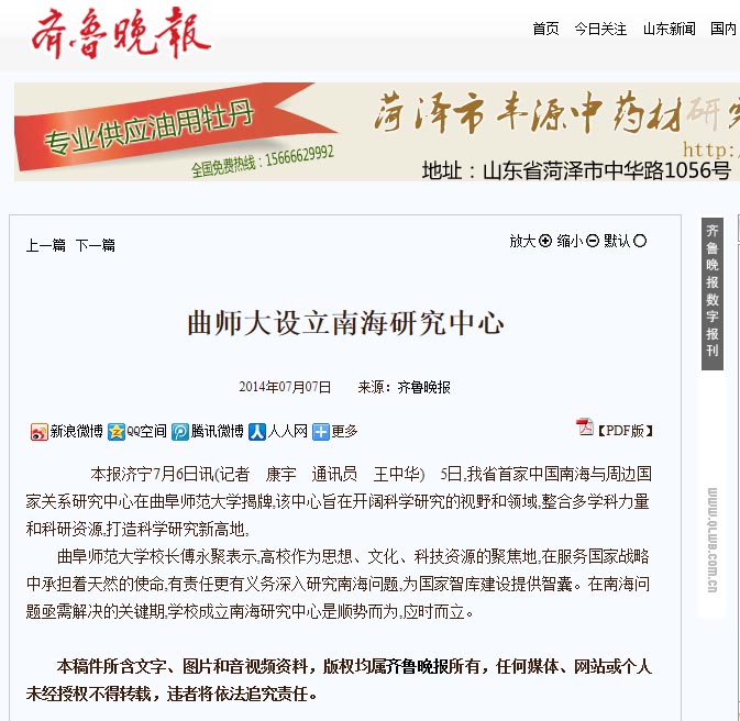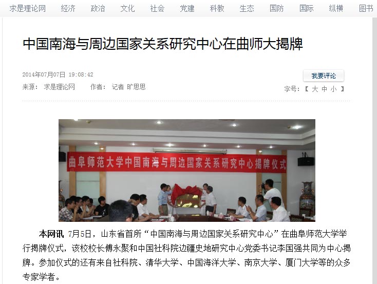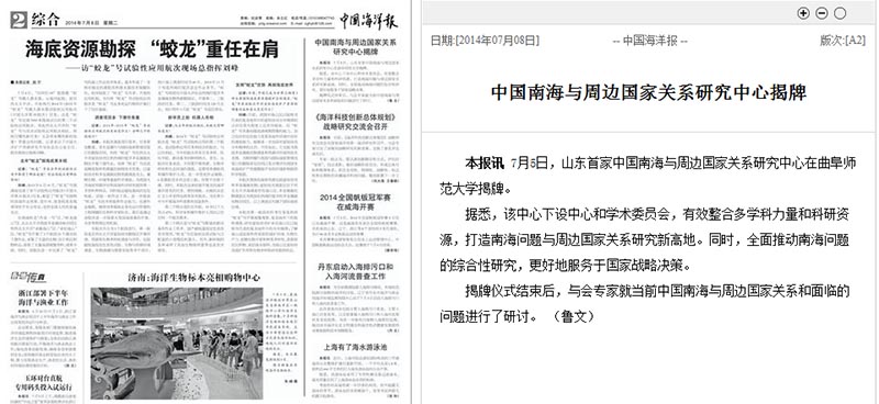 中国报道:中国南海与周边国家关系研究中心在曲师大揭牌