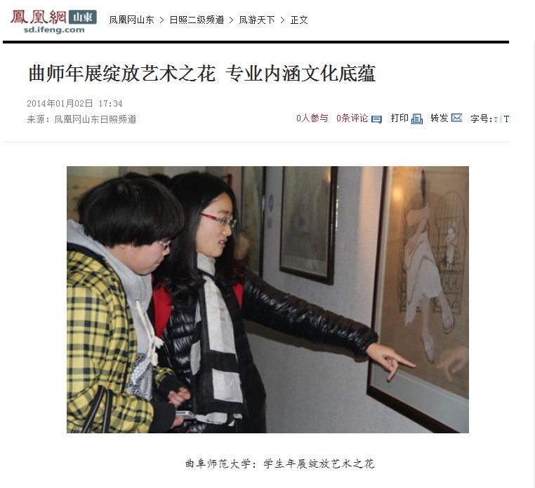 凤凰网:曲师大学生年展绽放艺术之花 专业内涵文化底蕴