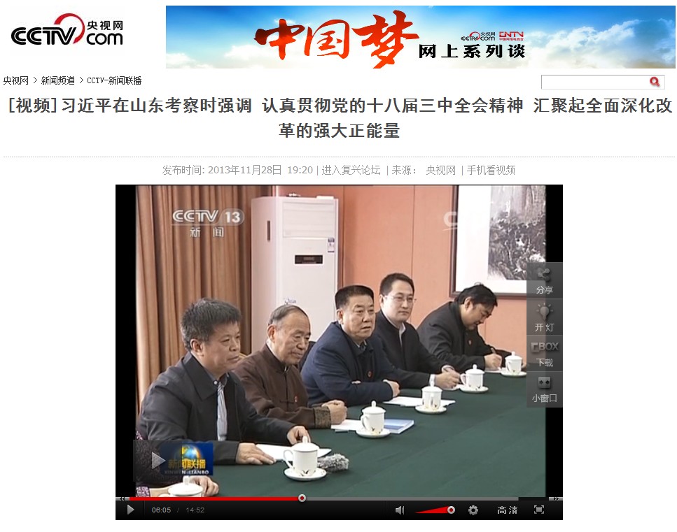 新闻联播:习近平在山东考察时强调 认真贯彻党的十八届三中全会精神 汇聚起全面深化改革的强大正能量