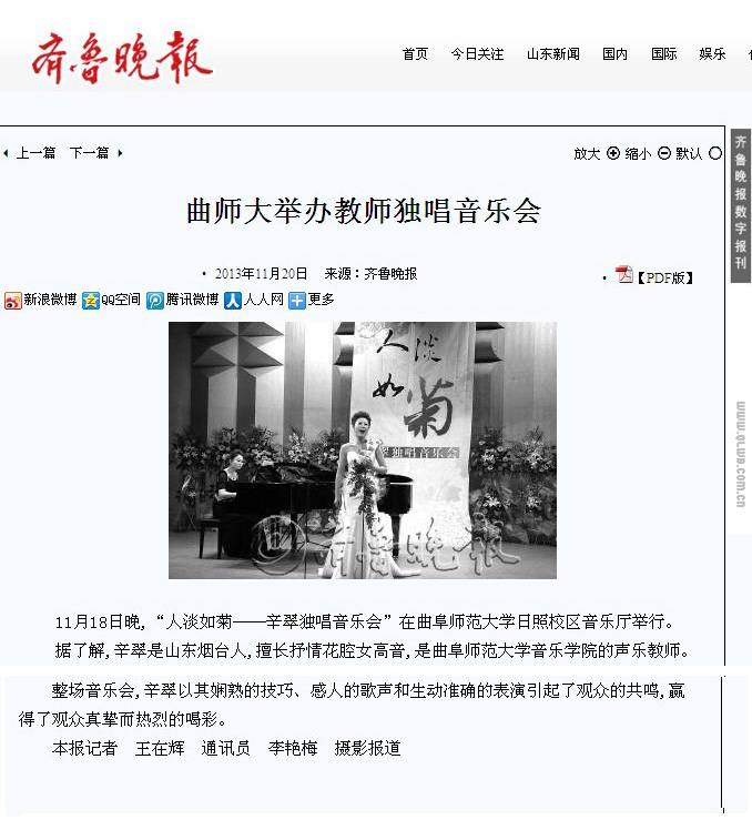 齐鲁晚报:曲师大举办教师独唱音乐会