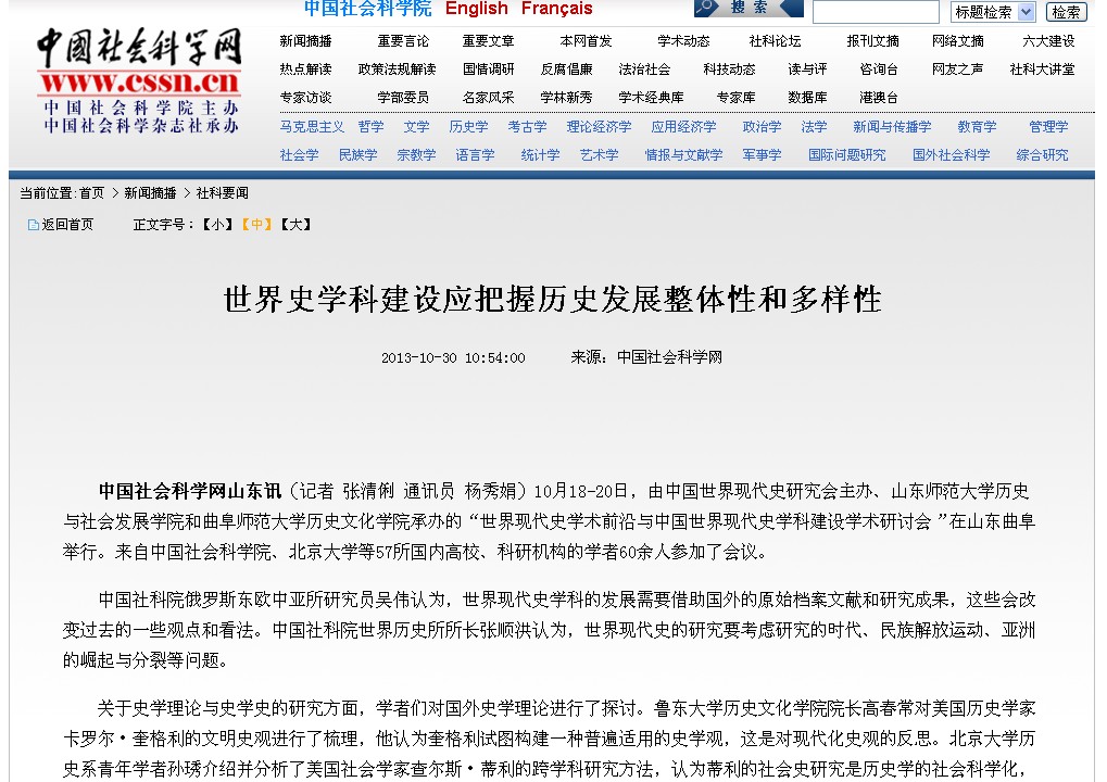 中国社会科学网:世界史学科建设应把握历史发展整体性和多样性