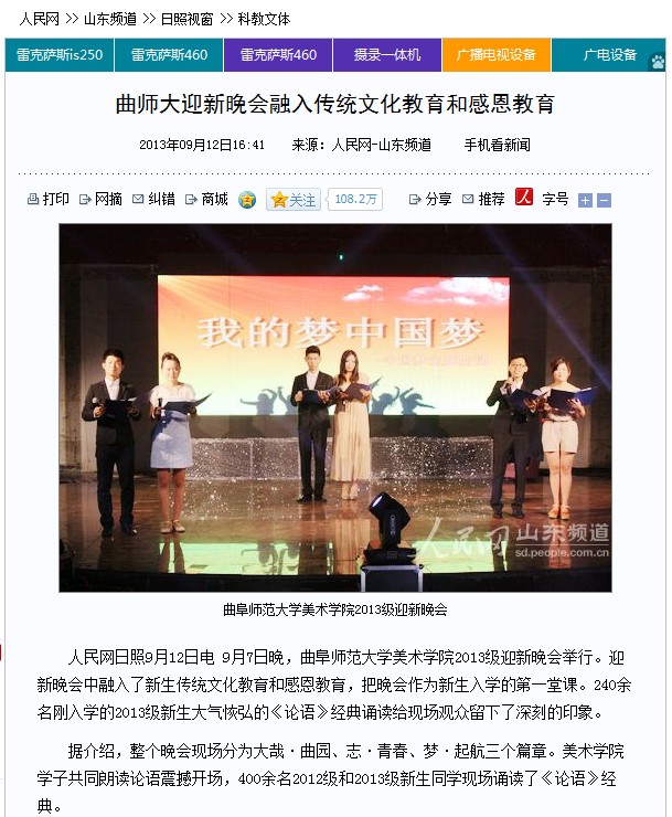 人民网:曲师大迎新晚会融入传统文化教育和感恩教育