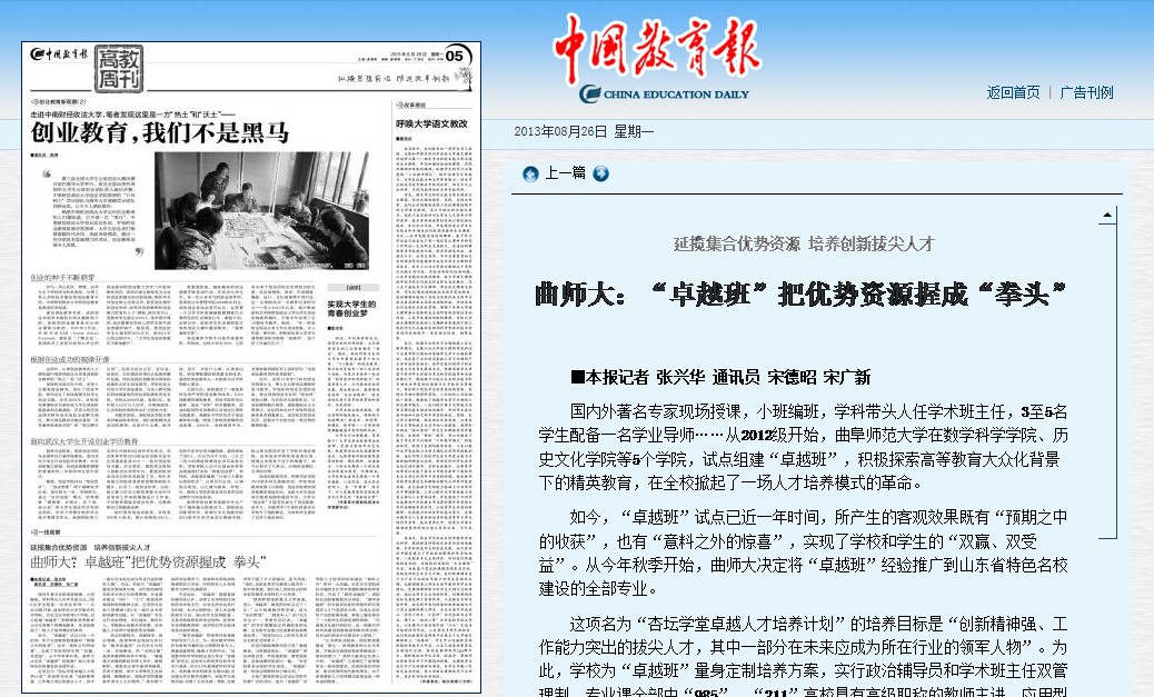 中国教育报:曲师大:“卓越班”把优势资源握成“拳头”