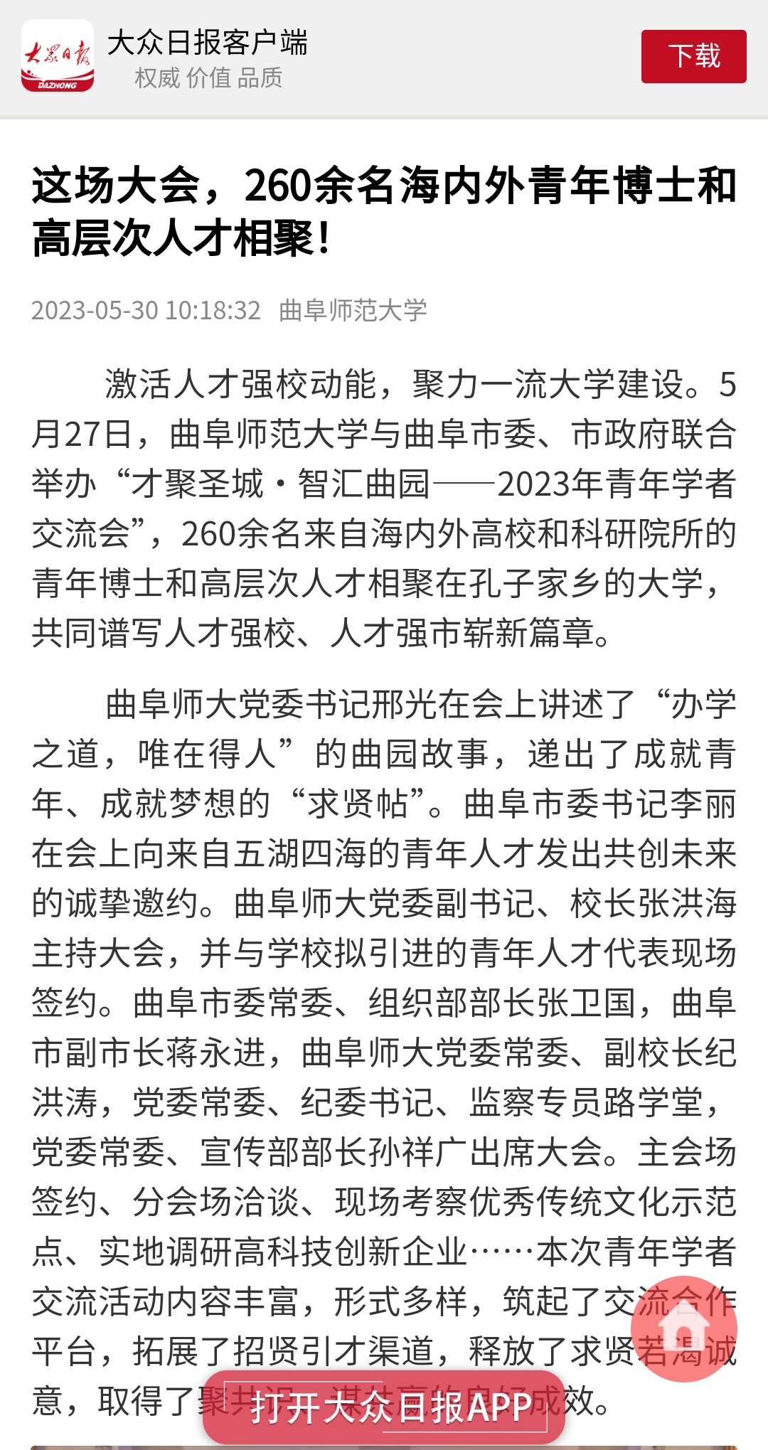【大众日报】这场大会,260余名海内外青年博士和高层次人才相聚!