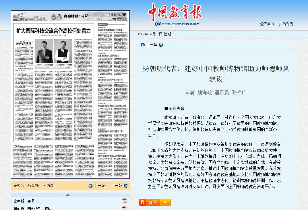 【中国教育报】杨朝明代表:建好教师博物馆助力师德师风建设