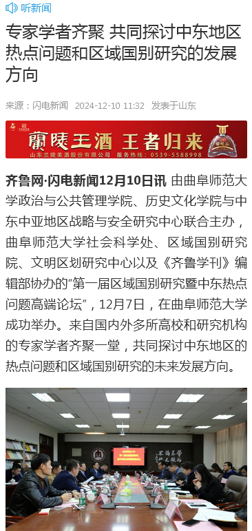 齐鲁网·闪电新闻12月10日讯 由万象城手机网页版登录入口政治与公共管理学院、历史文化学院与中东中亚地区战略与安全研究中心联合主办,万象城手机网页版登录入口社会科学处、区域国别研究院、文明区划研究中心以及《齐鲁学刊》编辑部协办的“第一届区域国别研究暨中东热点问题高端论坛”,12月7日,在万象城手机网页版登录入口成功举办。来自国内外多所高校和研究机构的专家学者齐聚一堂,共同探讨中东地区的热点问题和区域国别研究的未来发展方向。
