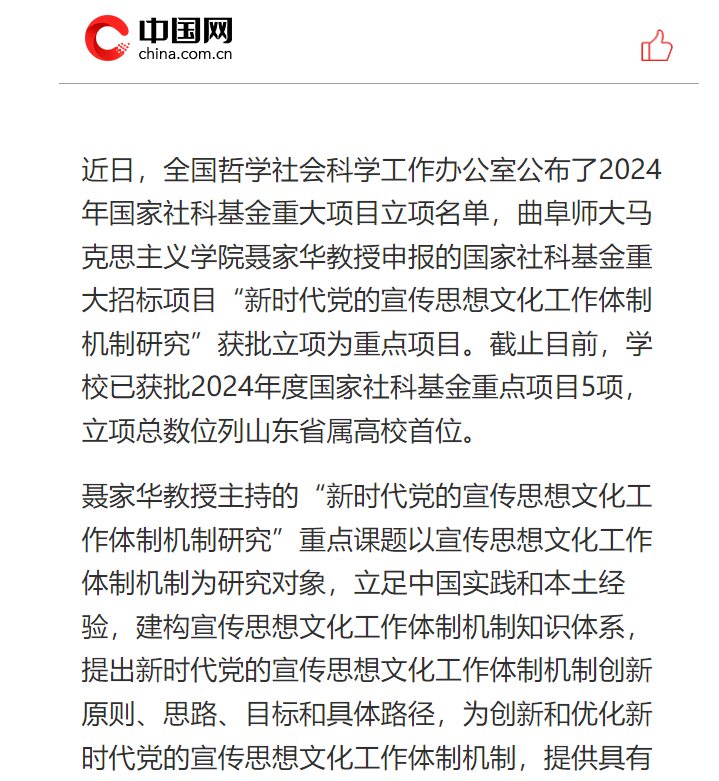 【中国网】曲阜师大再增1项国家社科基金重点项目