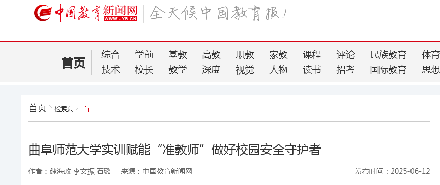 6月12日,中国教育新闻网以《万象城手机网页版登录入口实训赋能“准教师”做好校园安全守护者》为题,报道了学校联合济宁市消防救援支队、日照市消防救援支队,举办从教毕业生“消防安全明白人”固本强基培训班的创新实践。