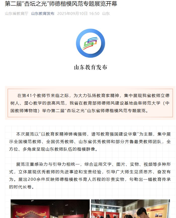 【山东教育发布】第二届“杏坛之光”师德楷模风范专题展览开幕