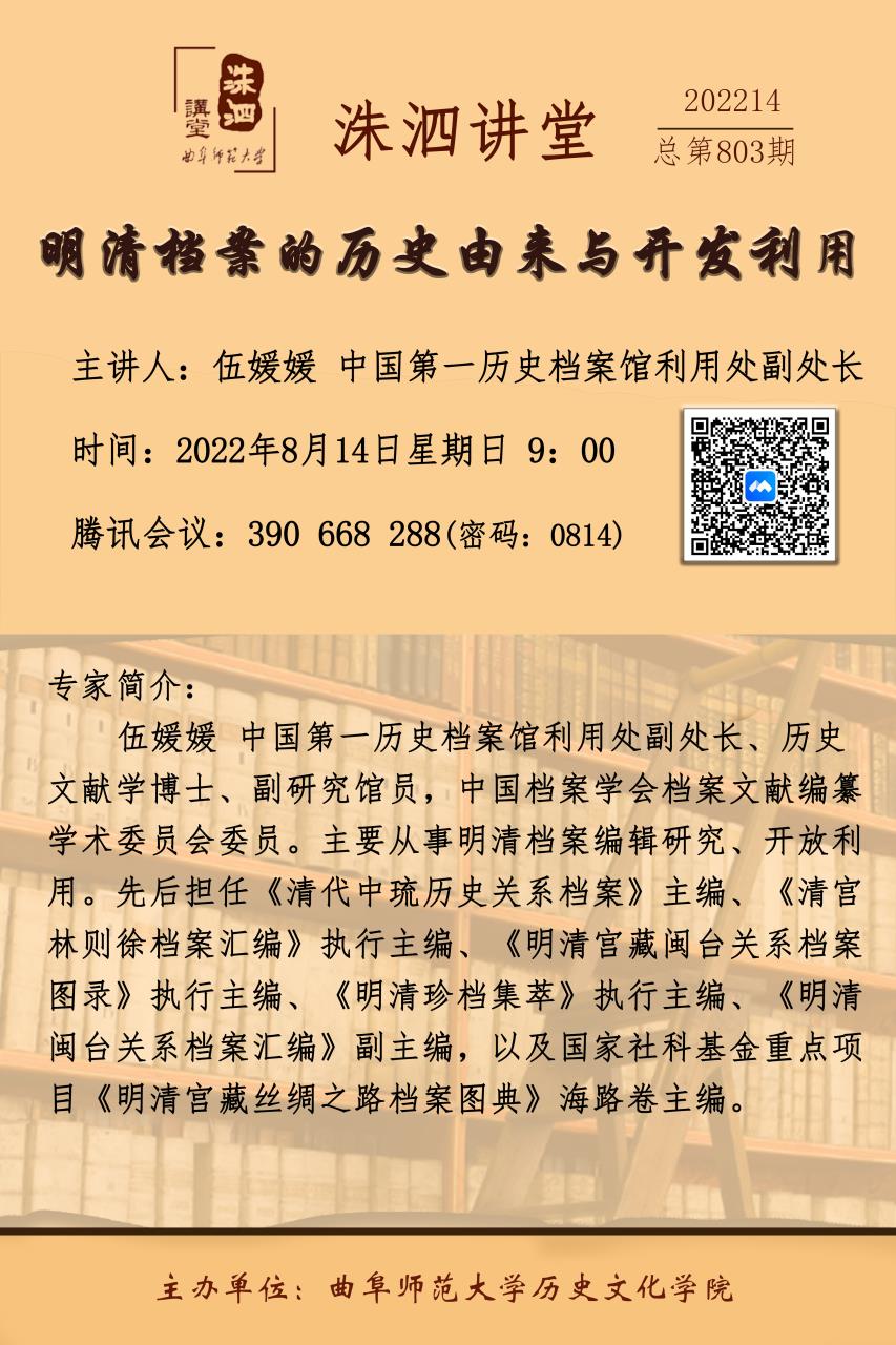 洙泗讲堂预告| 伍媛媛:明清档案的历史由来与开发利用