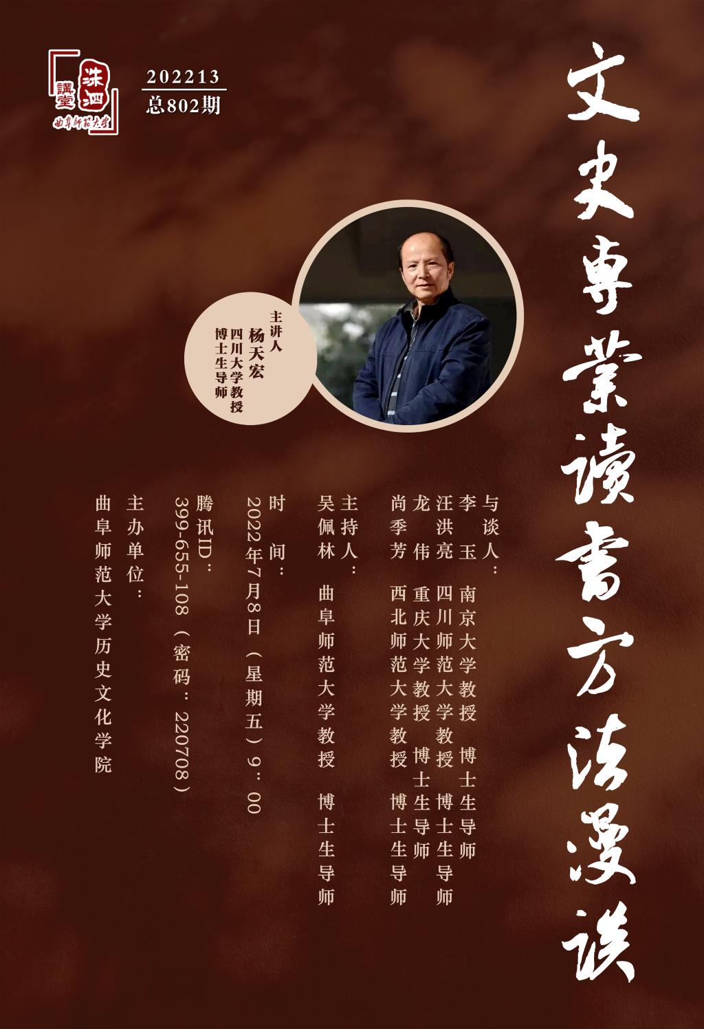 洙泗讲堂预告|杨天宏:文史专业读书方法漫谈