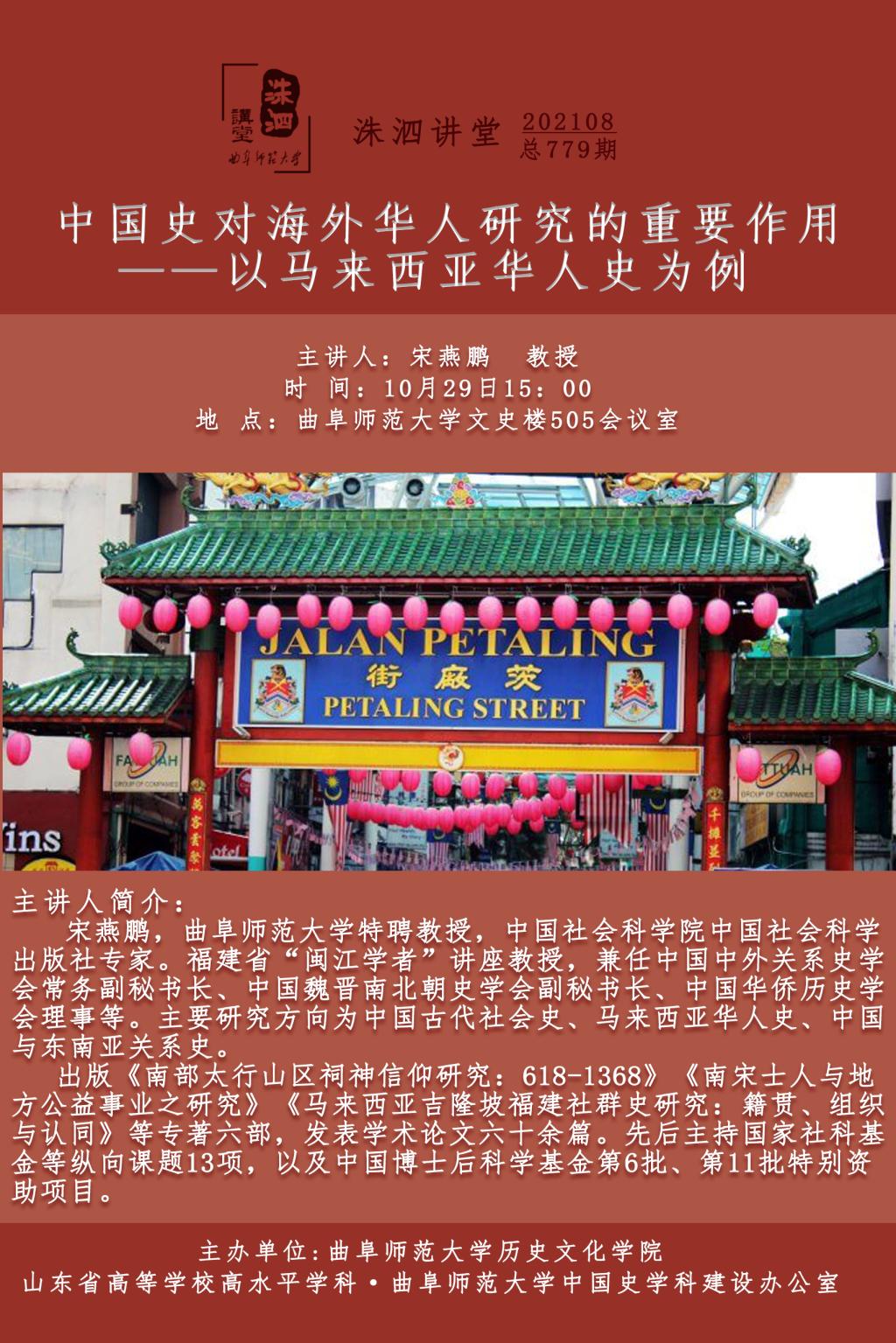 洙泗讲堂预告|宋燕鹏:中国史对海外华人研究的重要作用——以马来西亚华人史为例