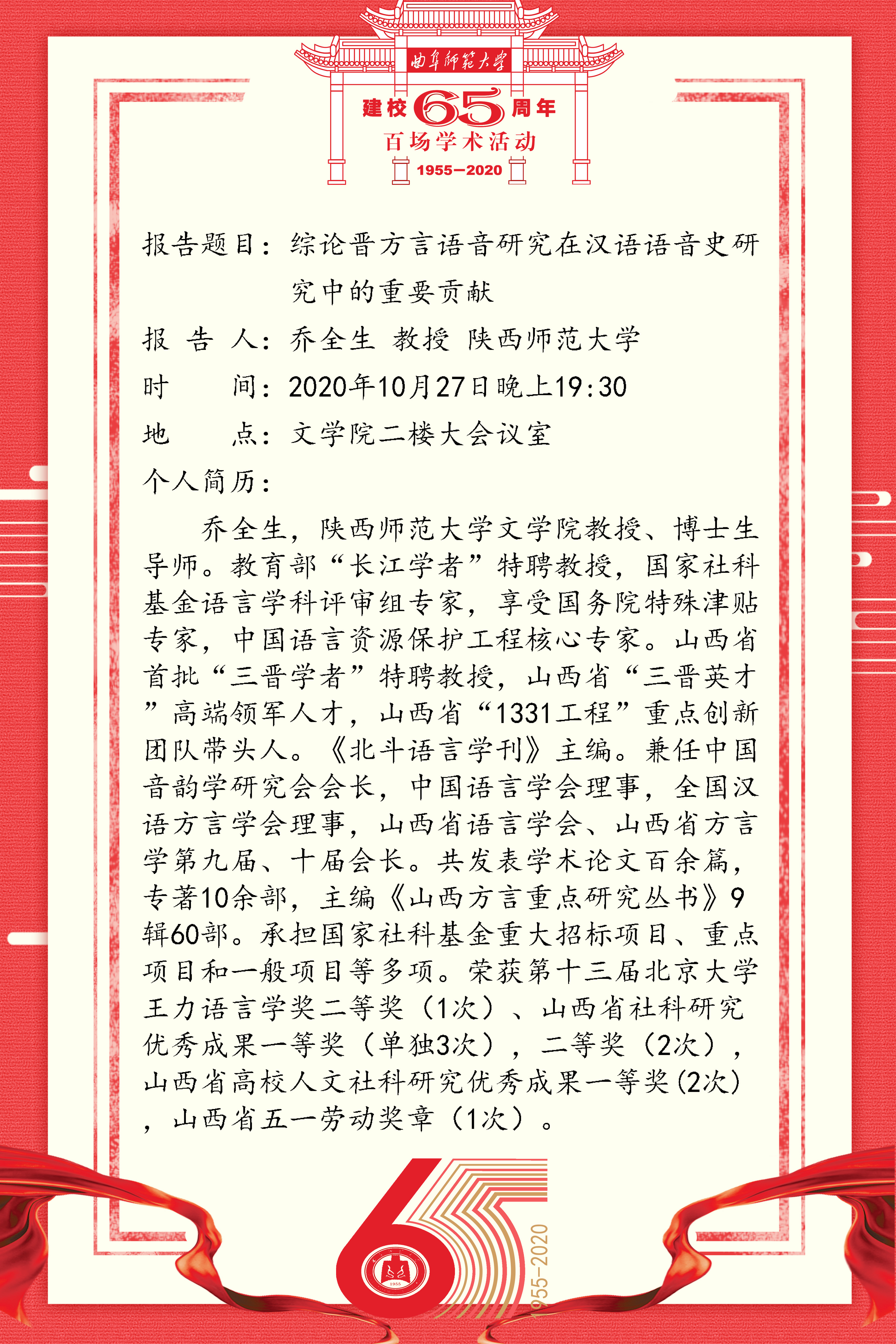 建校65周年百场学术活动-陕西师范大学乔全生教授