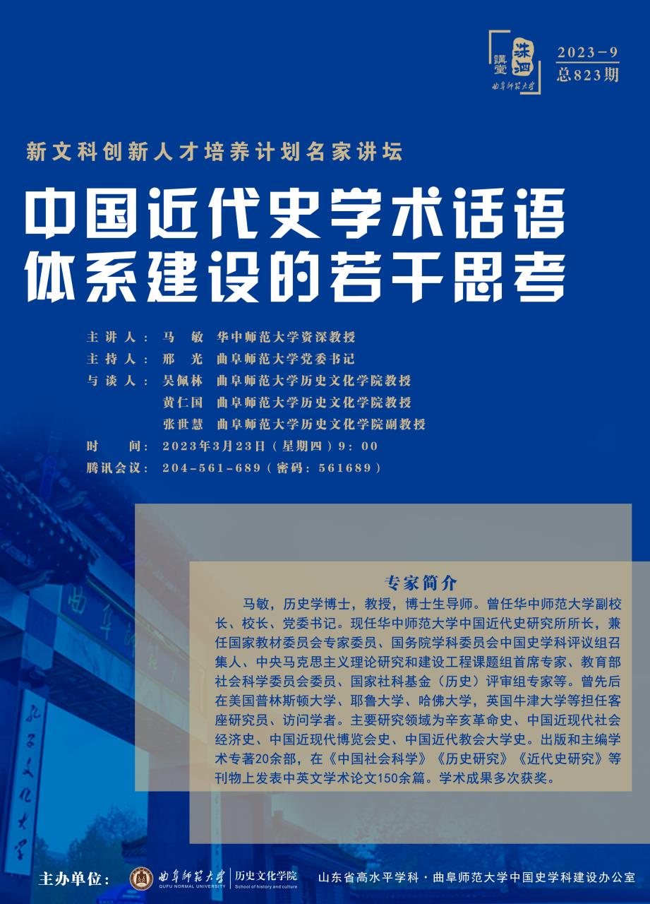 洙泗讲堂预告|马敏:中国近代史学术话语体系建设的若干思考