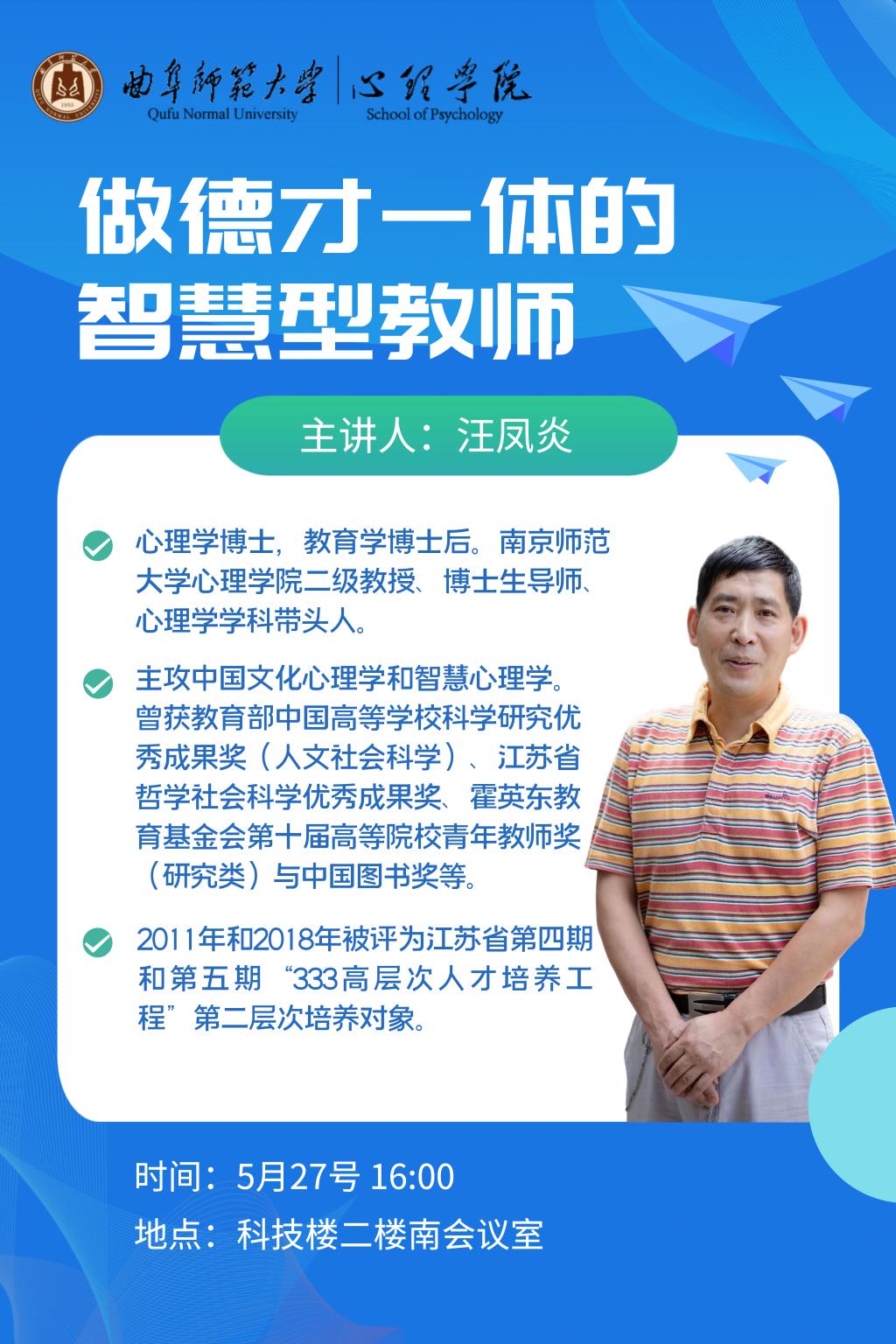 心理学院讲座预告:做德才一体的智慧型教师