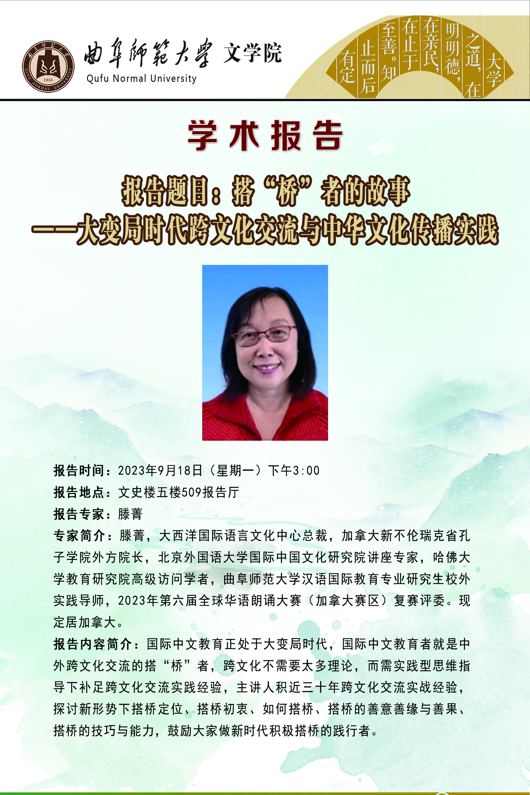 专家简介:滕菁,大西洋国际语言文化中心总裁,北京外国语大学国际中国文化研究院讲座专家,哈佛大学教育研究院高级访问学者,万象城手机网页版登录入口汉语国际教育专业研究生校外实践导师,2023年第六届全球华语朗诵大赛(加拿大赛区)复赛评委。现定居加拿大。